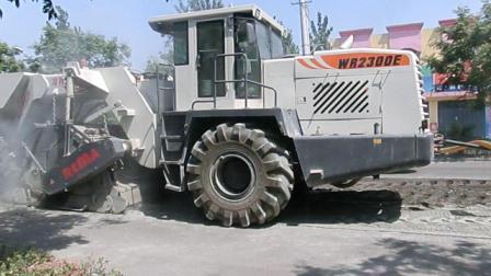 由于平顶山地区石料材质的原因,这一路段冷再生施工可以说是我们目前所遇到的“磨刀最厉害”的冷再生工程了。除了东段的一台WR2300L,在西边靠近宝丰县城的另一个标段还有一台我公司生产的全电控600马力冷再生机WR2300E,这一施工路段的强度比东边的强度更高,所以施工速度比另一台WR2300L略慢,一般一分钟只能跑四米,个别超硬的路段甚至不到3米。这台机器刚开始施工时,对这一路段的硬度估计不足,第一天就发生了刀具过度磨损导致刀库损坏的情况,曾经有一段路,不到700平方,消耗了超过100把水泥刀,单算这一段,租赁费连刀头钱都远远不够。但与其它来干过或试过的冷再生机相比,我们的WR2300E却表现出了明显的优势,其它品牌的冷再生机,有的是干不动,有的是不堪磨损,最后都撤场走了。据统计,这一路段已“干跑”了5台冷再生机了。最早是两台从周口来的国内大公司生产的600马力冷再生机,试刀干不动。第三台是一台进口的2500,一分钟跑3米,前面文章说过,4天干了3000平方,发动机水温还高,机主不愿干下去退场了。第四台还是国内一大公司的600冷再生机,拖板车拉来机器,下车试刀,打不动,直接就上拖板车走了。第五台又是一台进口的2000型冷再生机,机主干了一天,打断了两个刀杆,连磨带打断损失了37个刀库,这种进口机器的配件可贵了,这种损耗工地不愿承担,机主二话不说,走为上计。尽管其它冷再生机走马灯似的调换,我公司的这一台WR2300E不畏严苛的路况,坚持做完了工程,平顶山公路局特意安排采访,询问是那一家生产的冷再生机可以全程做完这个冷再生工程。